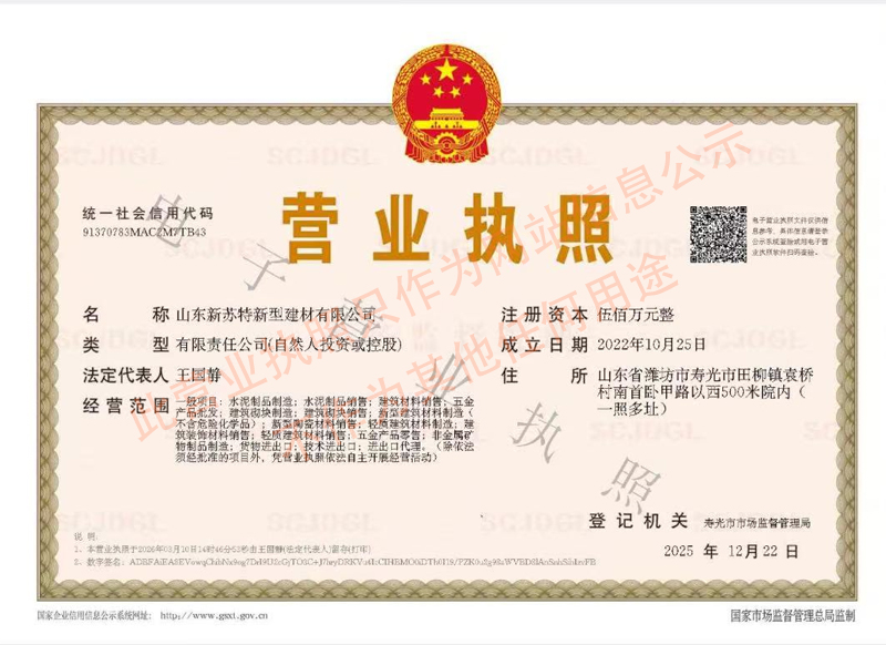Company Name: Shandong Xinsute New Building Materials Co., Ltd.